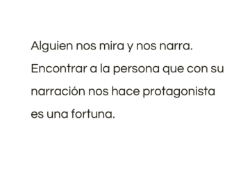 Alguien nos mira y nos narra. Encontrar a la persona que con su narración nos...